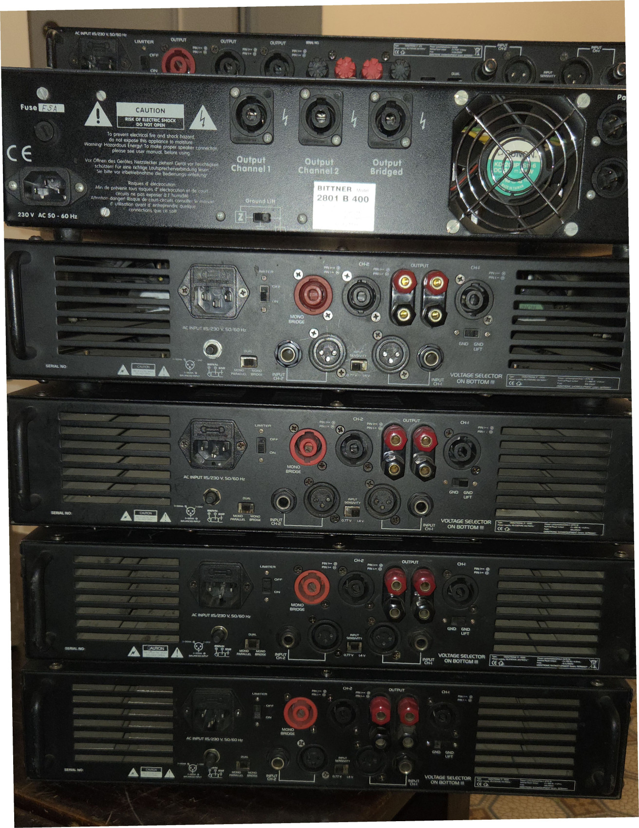 Koncové zesilovače Omnitronic a Bittner: P-1000 3x, P-1500, P-125, P-1500, Bittner 2801 B400